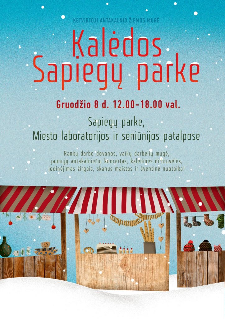 Ateinantį savaitgalį, gruodžio 8 d., šeštadienį vyks ketvirtoji Antakalnio žiemos mugė „Kalėdos Sapiegų parke“, kur bus gausu rankų darbo dovanų, gardaus maisto, pramogų ir šypsenų. Tuo pat metu Naujamiestyje geriausiomis emocijomis trykš kalėdinė šventė „Švęskime Naujamiestį“. Šiemet smagūs kalėdiniai renginiai, spalvingos amatų mugės, jaukios vakaronės ir linksmybės vyks 22-jose Vilniaus miesto seniūnijose ir bendruomenėse visą gruodžio mėnesį.