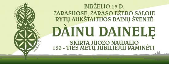 Birželio 15 d., šeštadienį, nuo 17.00 val. Zaraso ežero Didžioji sala skambės nuo dainų – vyks Rytų Aukštaitijos dainų šventė „Dainų Dainelė“, skirta Lietuvos muzikos patriarcho Juozo Naujalio 150 – mečio jubiliejui. Tarp daugybės dalyvių dainų šventėje sutiksime ir Vilniaus kultūros centro narius – moterų chorą „Liepos“ bei LRT vaikų chorą. Programoje: · „Tautiška giesmė“ Vinco Kudirkos...Žiūrėti plačiau