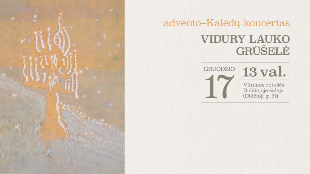 Kasmetiniame advento laikotarpio koncerte „Vidury lauko grūšelė“ Vilniaus Rotušės Didžiojoje salėje gruodžio 17 d., sekmadienį skambės ne tik tautosakos kūriniai, bet ir sutartinės bei instrumentinė muzika. Koncertu taip pat atšvęsime Vilniaus etninės kultūros centro 25 metų sukaktį! Šventinę nuotaiką kurti padės folkloro ansambliai ir grupės: Dijūta, Obelija, Ratilio, Vilnelė, Visi, Ūla, Rana bei Vilniaus kultūros centro...Žiūrėti plačiau