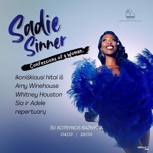 03balandžio19:00Sadie Sinner | Confessions of a WomanŠv. Kotrynos bažnyčia19:00(GMT+03:00) Bilietai