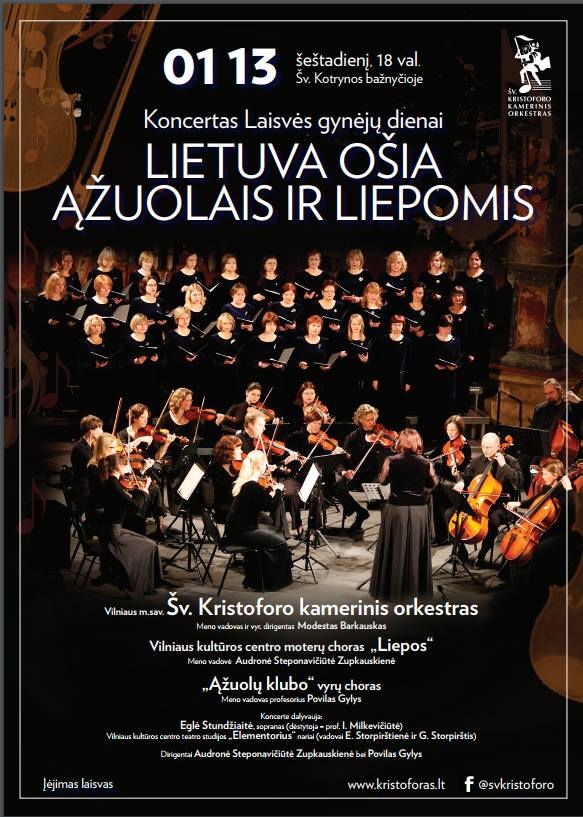 Vilniaus miesto savivaldybės Šv. Kristoforo kamerinio orkestro ir Vilniaus kultūros centro moterų choro „Liepos ir „Ąžuolų klubo“ vyrų choro koncertas, skirtas Sausio 13-ajai – Laisvės gynėjų dienai paminėti.Sausio 13-oji – Laisvės gynėjų diena, kuri šįkart taps tarsi uvertiūra dar vienam reikšmingam ir jaudinamam įvykiui – Lietuvos valstybės atkūrimo šimtmečiui.