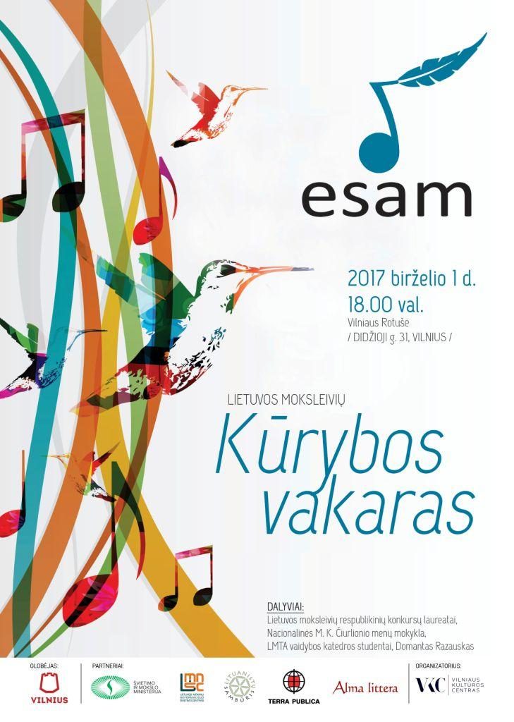 Lietuvos moksleivių kūrybos vakaras „Esam“ skirtas jaunosios kartos kūrybai skatinti, jai pristatyti, megzti bei puoselėti moksleivių bendruomeninius ir kultūrinius ryšius.