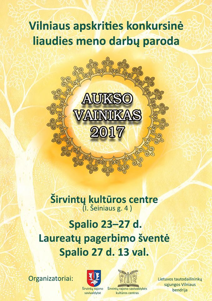 Vilniaus regiono konkursinėje liaudies meno parodoje „ Aukso vainikas – 2017“ Vilniaus kultūros centro dailės studijos „Paletė“ nariai ir vėl tarp laureatų