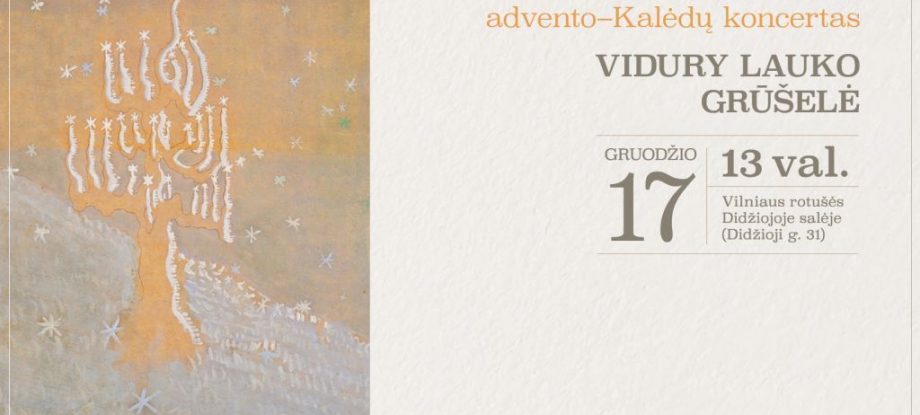 Kasmetiniame advento laikotarpio koncerte „Vidury lauko grūšelė“ Vilniaus Rotušės Didžiojoje salėje gruodžio 17 d., sekmadienį skambės ne tik tautosakos kūriniai, bet ir sutartinės bei instrumentinė muzika. Koncertu taip pat atšvęsime Vilniaus etninės kultūros centro 25 metų sukaktį! Šventinę nuotaiką kurti padės folkloro ansambliai ir grupės: Dijūta, Obelija, Ratilio, Vilnelė, Visi, Ūla, Rana bei Vilniaus kultūros centro folkloro ansamblis Jorė. Įėjimas laisvas.Žiūrėti plačiau