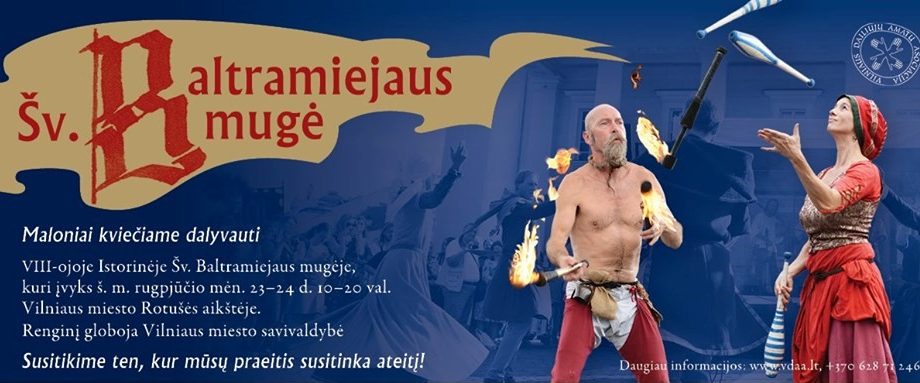Aštuntąjį kartą organizuojama Lietuvos tautiniu paveldu pripažinta tradicinė Šv. Baltramiejaus mugė. Ji vyks vyks rugpjūčio 23–24 dienomis Vilniaus Rotušės aikštėje. Tai istorinė vėlyvųjų viduramžių ir Renesanso epochos miesto amatų, menų ir cechų tradicijų šventė. Mugė vilniečiams žinoma nuo XVII a. vidurio, kuomet ji pirmą kartą buvo paminėta Vilniaus puodžių cecho statute 1664 metais. Dvi dienas vykstanti Šv. Baltramiejaus mugė prasidės iškilminga visų dalyvių amatininkų eisena, nešina istorinėmis cechų vėliavomis nuo Aušros...Žiūrėti plačiau