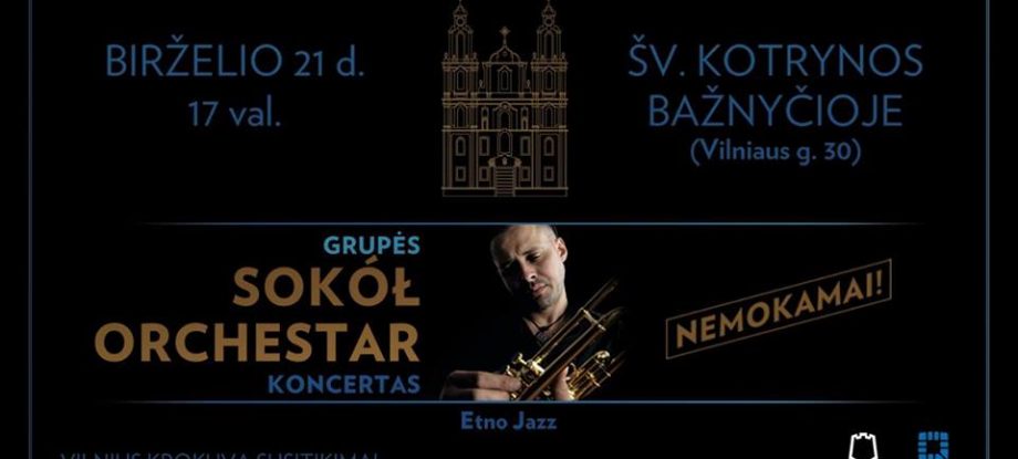 Vilniaus ir Krokuvos miestų savivaldybės vilniečius ir sostinės svečius kviečia į bendrą projektą – unikalios etnodžiazo grupės iš Krokuvos – Sokół Orchestar koncertą. Nuo 2011 metų klausytojų širdis savo šalyje ir užsienyje išskirtiniu Balkanams būdingu grojimo stiliumi, originaliu repertuaru ir svaiginančia pučiamųjų instrumentų galia kerinti grupė žiūrovus džiugins birželio 21 d., penktadienį, 17.00 val. Šv. Kotrynos bažnyčioje. Sokół Orchestar muzikantai su stebinančiu lengvumu jungia rimtumą su satyra, tradicijas su modernumu, žaismingumą su aukštu atlikimo lygiu....Žiūrėti plačiau