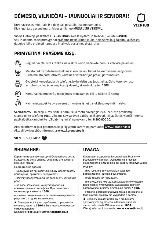 - Vilniaus miesto savivaldybės informacija ir dažniausiai užduodami klausimai dėl koronaviruso sukeltos situacijos skelbiami: https://sveikas.vilnius.lt./
