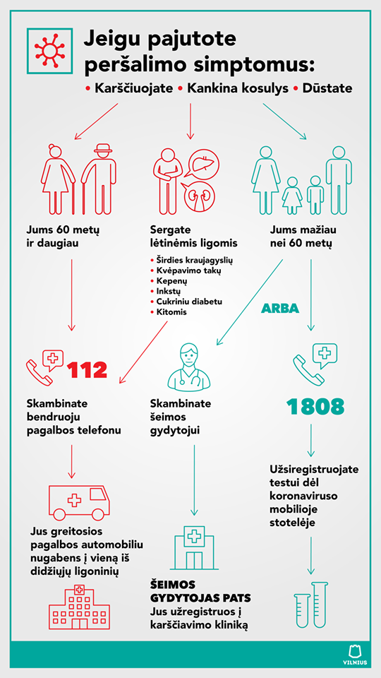 - Taip pat aktuali informacija skelbiama: koronastop.lt