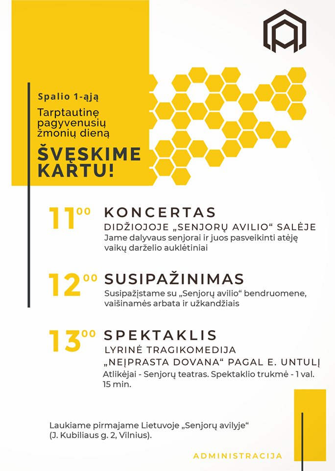 Renginio metu taip pat visuomenei bus pristatytos „Senjorų avilio“ erdvės, bendruomenės nariai, lankytojai bus vaišinami arbata ir užkandžiais.